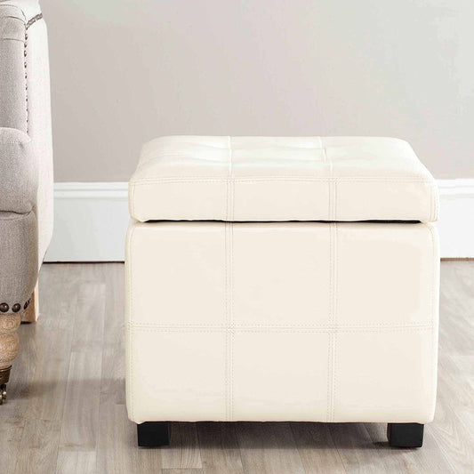 Noble House Jacky Rectangular Faux Leather Lift Top Storage Ottoman, Ivory