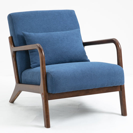 27.56" Modern Accent Chair with Plush Cushions, Minimalist Metal Frame, and Wooden Armrest Design – Perfect for Cozy Living Room, Bedroom, or Office Seating