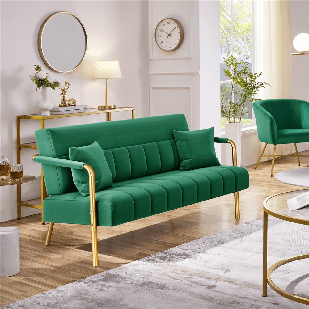 - Simple Structure, Soft Materials: This small loveseat is crafted with a solid wood & manufactured wood frame, supported by sturdy, streamlined iron arms & legs, bringing exceptional stability without the bulk. The futon is finished in lush velvet fabric, giving you excellent comfort and smoothness.